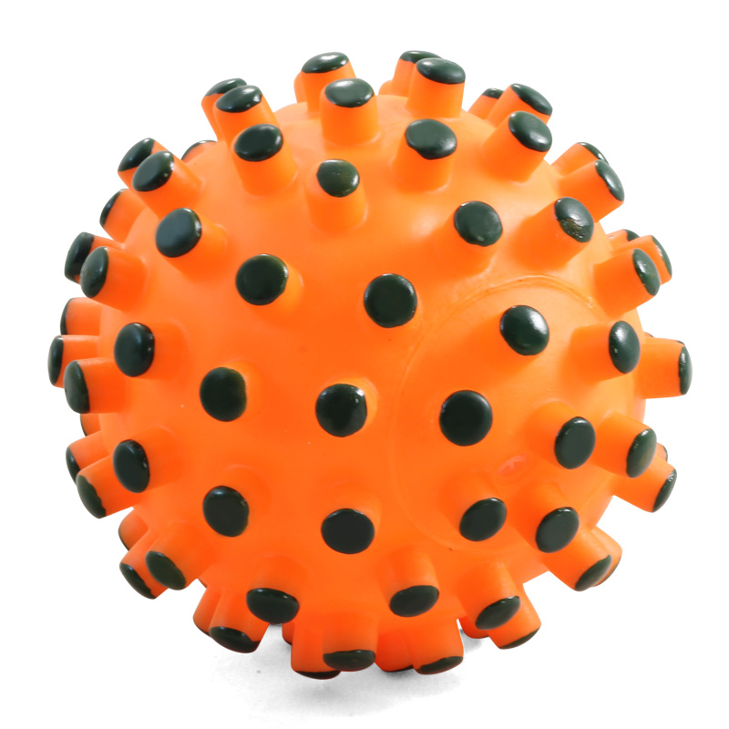 Виниловые игрушки помогают собаке снять стресс, если хозяина нет дома, массируют дёсны, а также способствуют формированию правильного поведения у собаки. Игрушка легко моется и не требует особого ухода. Мяч с шипами станет прекрасным подарком для неугомонного четвероногого питомца. С пищалкой внутри. Цвет: коралловый, голубой. Размер: d120мм.