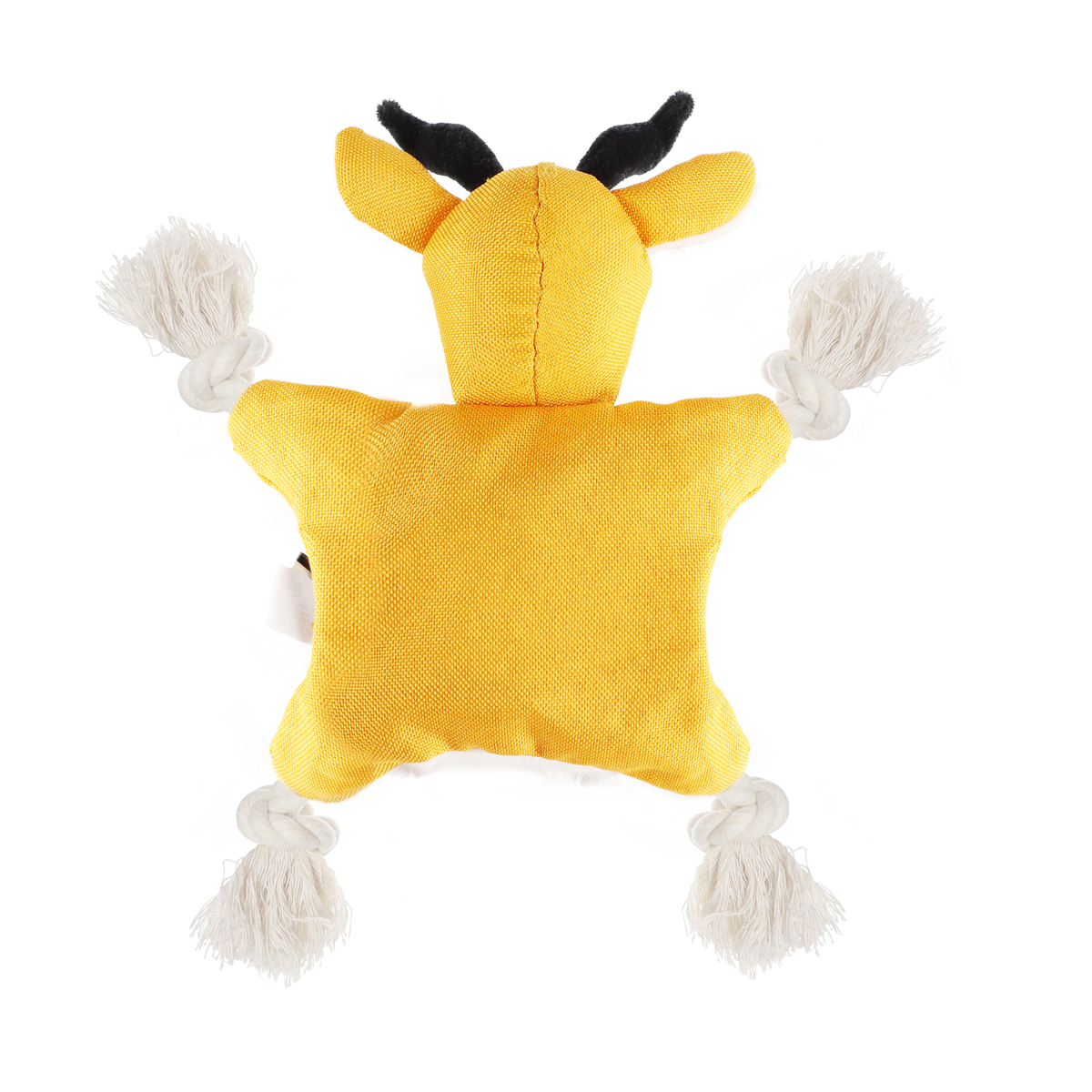 Игрушка подойдет для любой породы собак, так как создана из прочных материалов с хлопковыми веревками, также сделанных из пластиковых бутылок. Хрустящий наполнитель и пищалка привлекают питомца, а форма игрушки позволяет использовать ее для игр, обучения и дрессировки.
