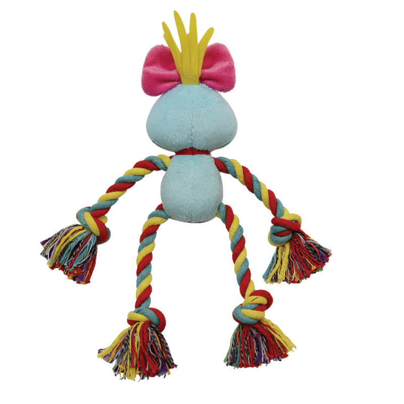 Безопасная, забавная игрушка для собак c пищалкой в виде известного персонажа Disney. Выполнена из мягкого плюша и хлопковых канатов. Подходит для тяговых игр. Развивает челюсть собаки. Цвет: голубой. Размер: 150*85*45мм.