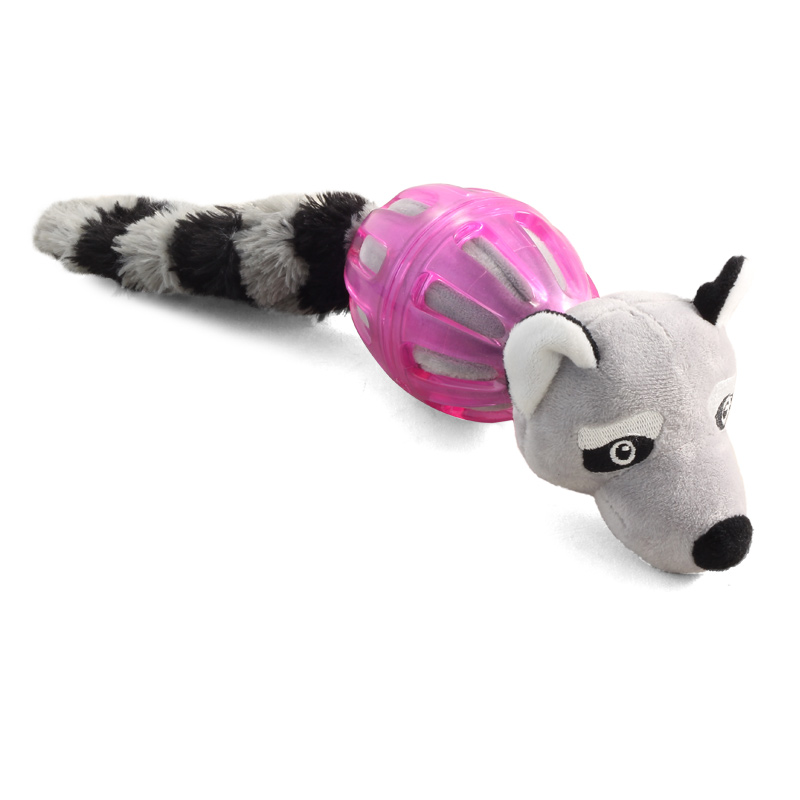 Мягкая и прочная, яркая и оригинальная – эта игрушка станет любимым развлечением для вашего питомца! Мягкий полиэстер приятен на ощупь и функционален, а корпус из термопластичной резины не боится механических повреждений и выдерживает даже самые активные игры. Игрушка в форме енота выполнена из высококачественных материалов, что гарантирует безопасность животного. Цвет: серый, фиолетовый. Размер: 350*75*75мм.