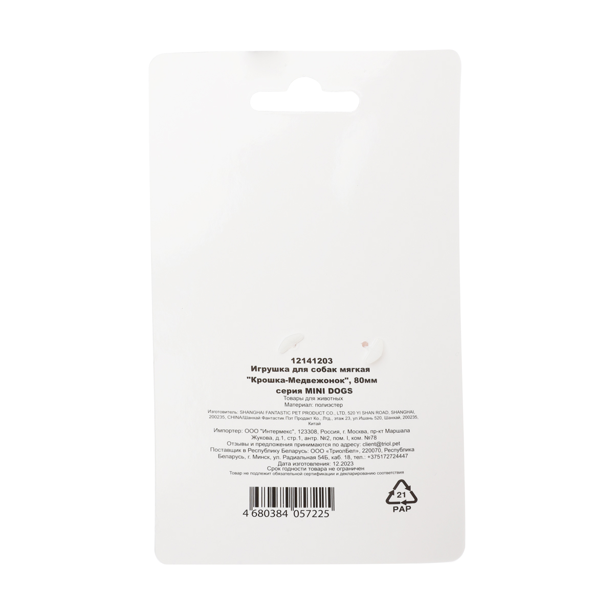 Игрушка для собак мягкая "Крошка-Медвежонок", 80мм, серия MINI DOGS, Triol