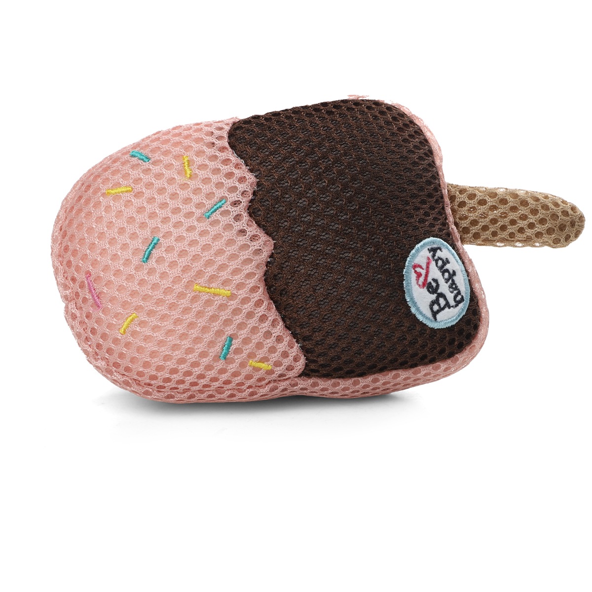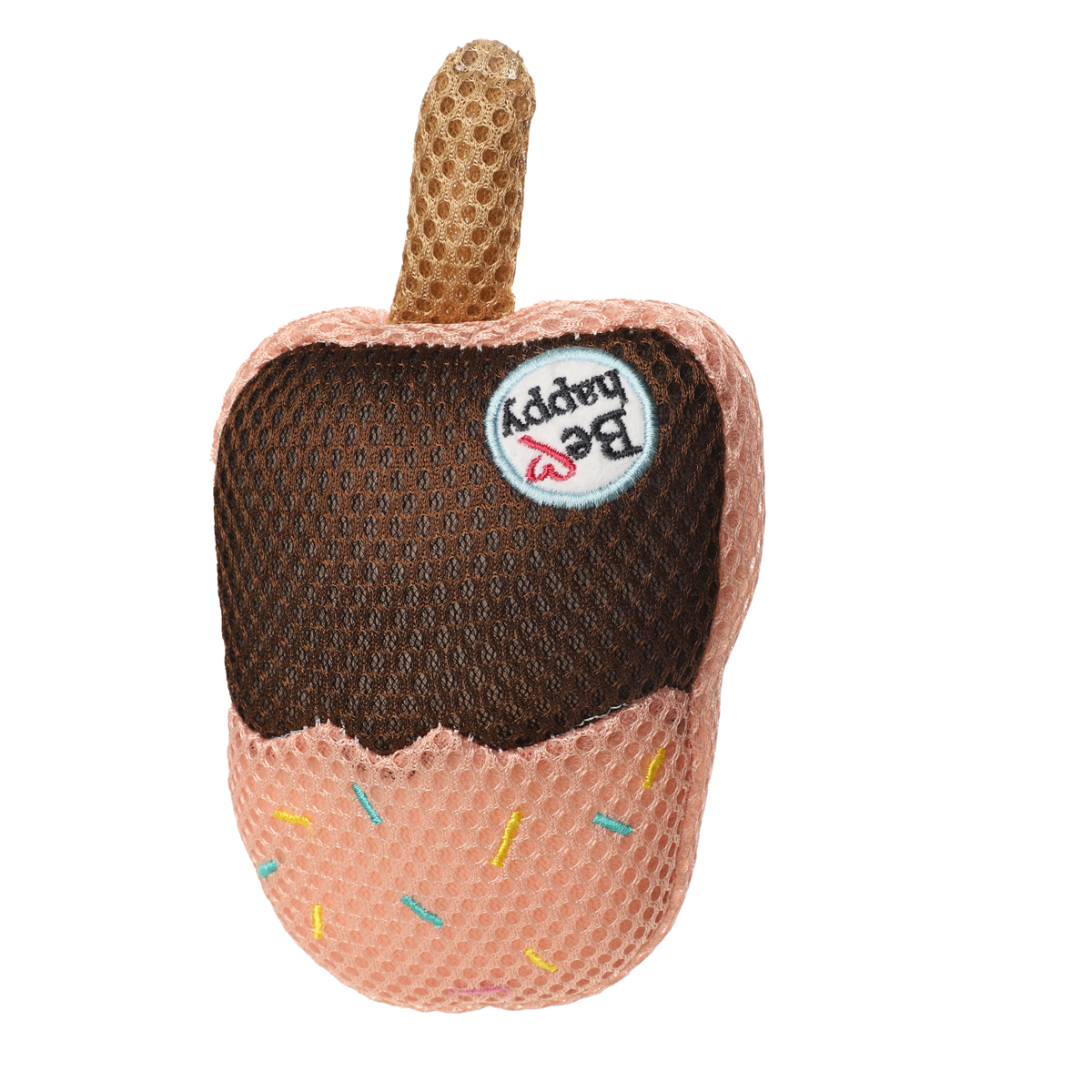 Очаровательная игрушка "Мороженое" с "пищалкой" внутри сшита из трикотажной сетки мэш. Благодаря продуманным габаритам изделие удобно носить в зубах, а звонкая "пищалка" внутри изделия пробуждает охотничьи инстинкты вашего питомца, делая игру еще интереснее. Цвет: коричневый, розовый. Размер: 175*90*50мм.
