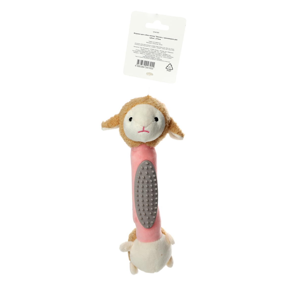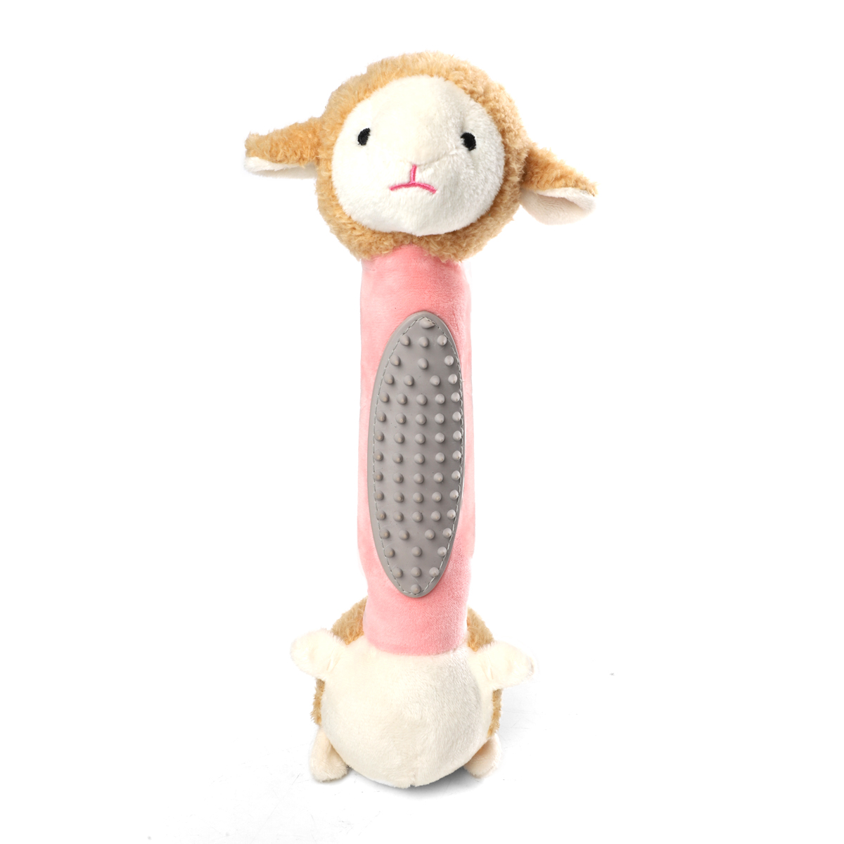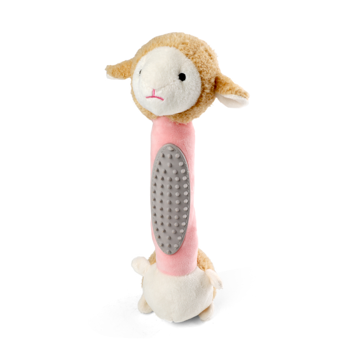 Мягкая игрушка "Овечка с тренажером для зубов" – это комбинация двух материалов: плюша и латекса. Мягкий плюш приятен на ощупь и функционален, а животик из латекса отлично очищает зубы и массирует десны. Изделие отлично подходит для собак средних пород, а также - для щенков в период прорезывания зубов. Такую игрушку удобно таскать в зубах и прятать в самых укромных уголках! Внутри игрушки расположена пищалка, которая вызывает интерес у питомца и пробуждает его охотничьи инстинкты. Игрушка выполнена из высококачественных материалов, что гарантирует безопасность животного. Цвет: бело-розовый. Размер изделия: 275*80*75мм.