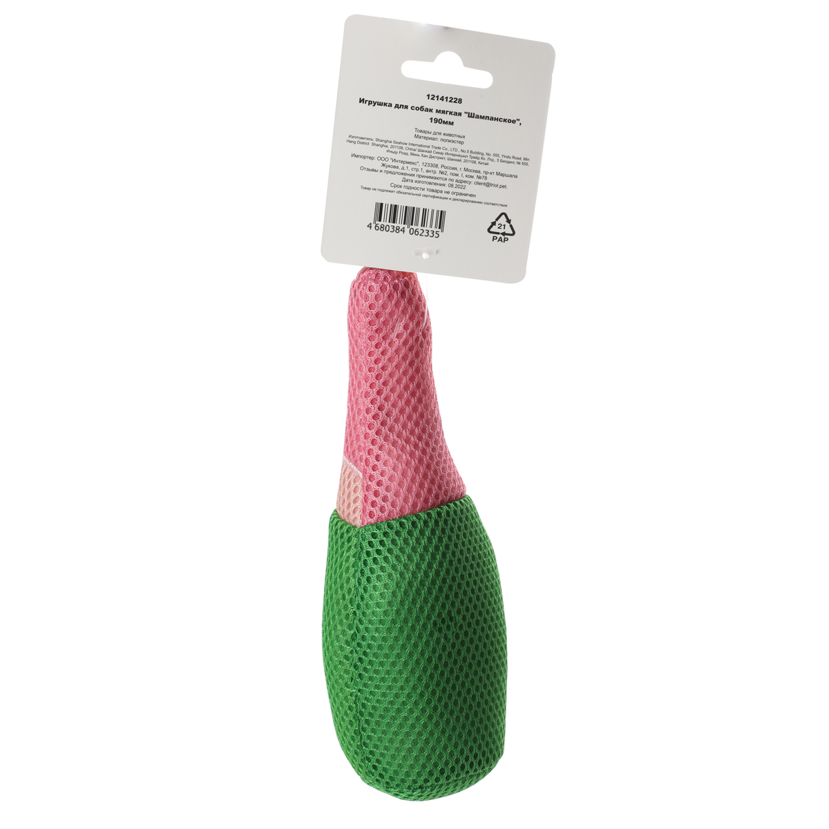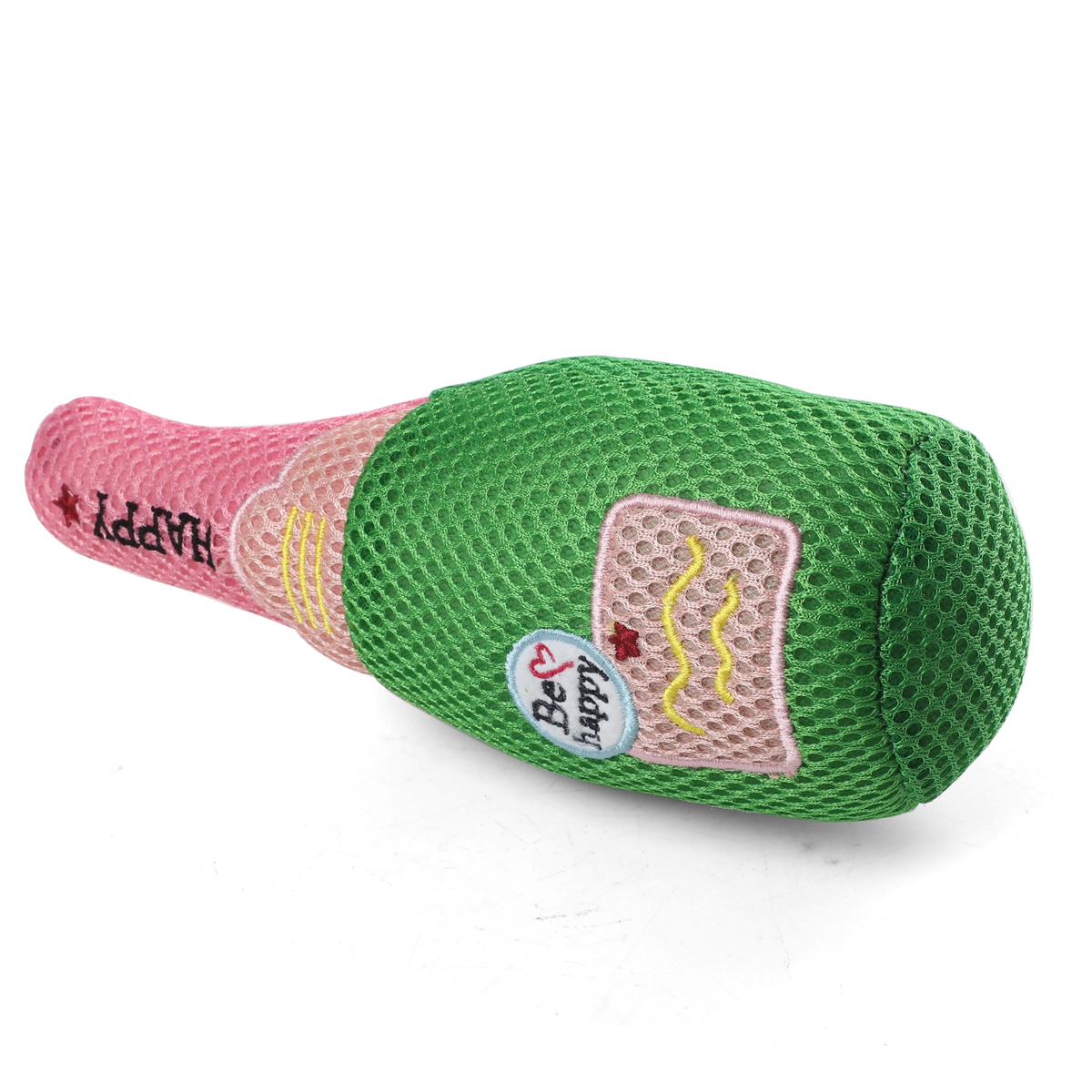 Очаровательная игрушка "Шампанское" с "пищалкой" внутри сшита из трикотажной сетки мэш. Благодаря продуманным габаритам изделие удобно носить в зубах, а звонкая "пищалка" внутри изделия пробуждает охотничьи инстинкты вашего питомца, делая игру еще интереснее. Цвет: зеленый, розовый. Размер: 190*80*70мм.