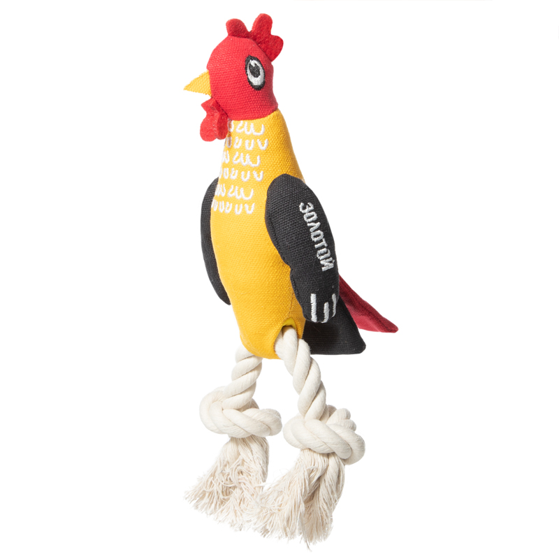 Игрушка для собак по мотивам русских сказок, с вышитыми элементами и пищалкой внутри. Веревочные ноги не закреплены, могут перемещаться от одного узла к другому. Игрушка отлично подойдет для игр в "перетяжки". Любимый сказочный персонаж и необычная упаковка изделия никого не оставят равнодушным! Цвет: желто-красно-черный. Размер: 230*80*50мм. Длина игрушки без веревки: 155мм.