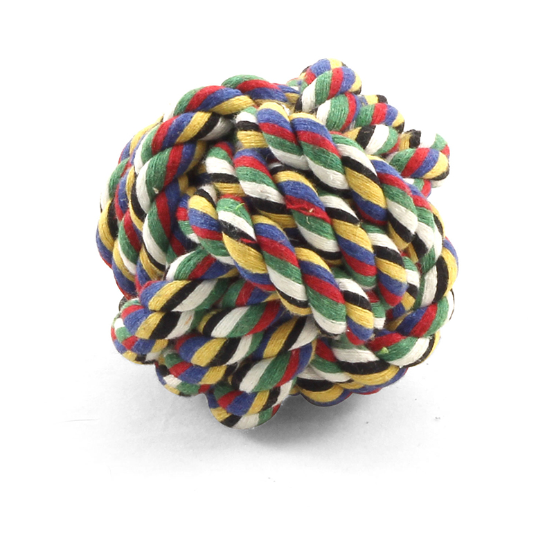 Плетеный мяч сделан из разноцветных веревок из натурального хлопка, очень прочный. Способствует тренировке жевательных мышц у собаки. Цвет: разноцветный. Размер d70мм.