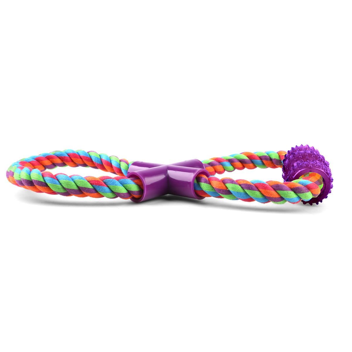 Веревка-кольцо предназначена для тяговых игр с собаками средних и крупных пород и хорошо развивает челюсть собаки. Веревка сплетена из нетей натурального хлопка, поэтому безопасна для здоровья Вашего питомца. Цвет: разноцветный. Вес: 180г. Размер: 180*165*35мм.