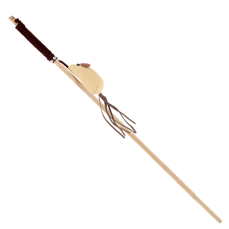 Удочка-дразнилка для кошек из дерева с игрушкой в виде мышки из хлопка - натурального материала, обладающего хорошей воздухопроницаемостью. Длина ручки: 400мм, размер мыши: 30*20*60/140мм.