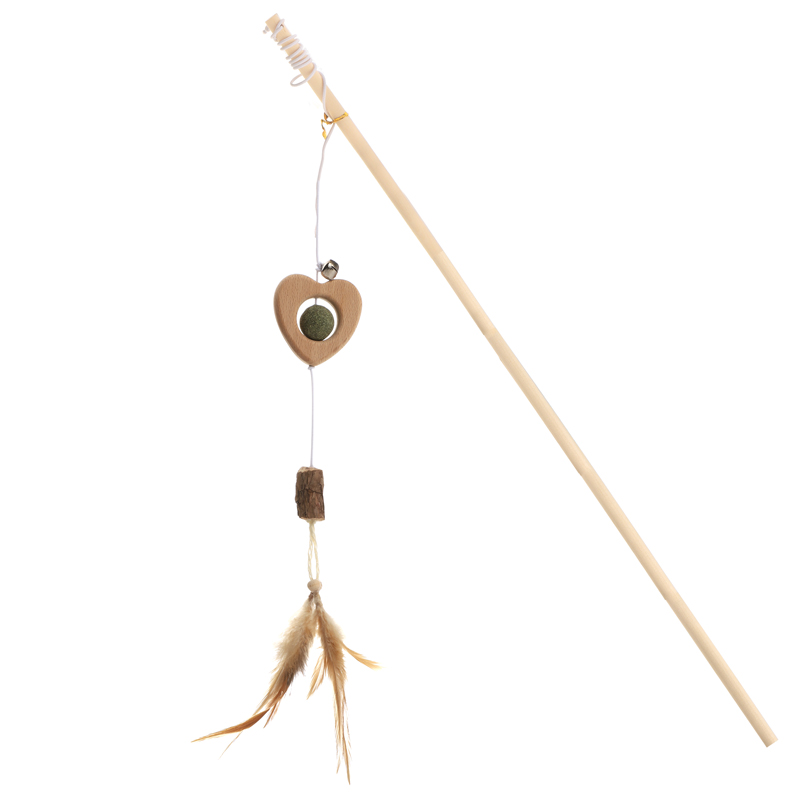 В составе игрушки: кошачья мята, перья, палочки мататаби и джут. Цвет: бежево-коричневый. Размер изделия: длина подвески: 240мм; длина удочки: 400мм; длина сердца: 53мм; длина палочки мататаби: 30мм; длина пера: 110мм.