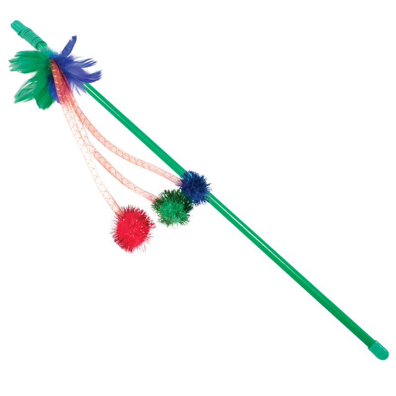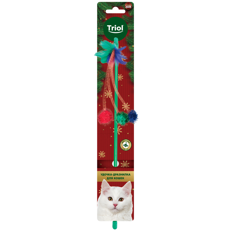 Яркая и функциональная удочка-дразнилка - это всегда актуальный аксессуар для усатых-полосатых. Такая удочка и развлекает питомца, и дрессирует одновременно, помогая кошке также держать мыщцы в тонусе, развивать сообразительность и реакцию. Игрушка имеет прочную пластиковую основу и декорирована оригинальными элементами в новогодней стилистике - яркие подвижные элементы (разноцветные перья, соединенные с 3-мя шариками) привлекут даже самых пассивных кошечек, вовлекая их в процесс веселой охоты. Размер: длина палочки - 470мм, длина украшения - 340мм.