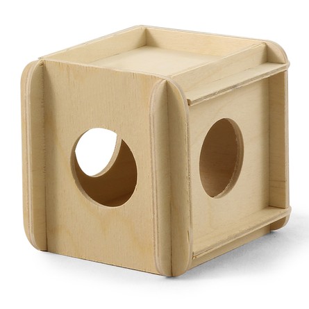 Эта деревянная игрушка-кубик станет отличной забавой для вашего маленького питомца. Эргономичная и функциональная, она также может служить домиком для мышей, песчанок, дегу, хомяков или может быть использована как игрушка-кормушка, если внутрь конструкции поместить сено или какие-нибудь лакомства. Кубик изготовлен из фанеры высшего качества, без скобок и гвоздей, без окрашивания, поэтому его легко можно раскрасить или декорировать на свой вкус. Размеры игрушки 10х10х11,5 см