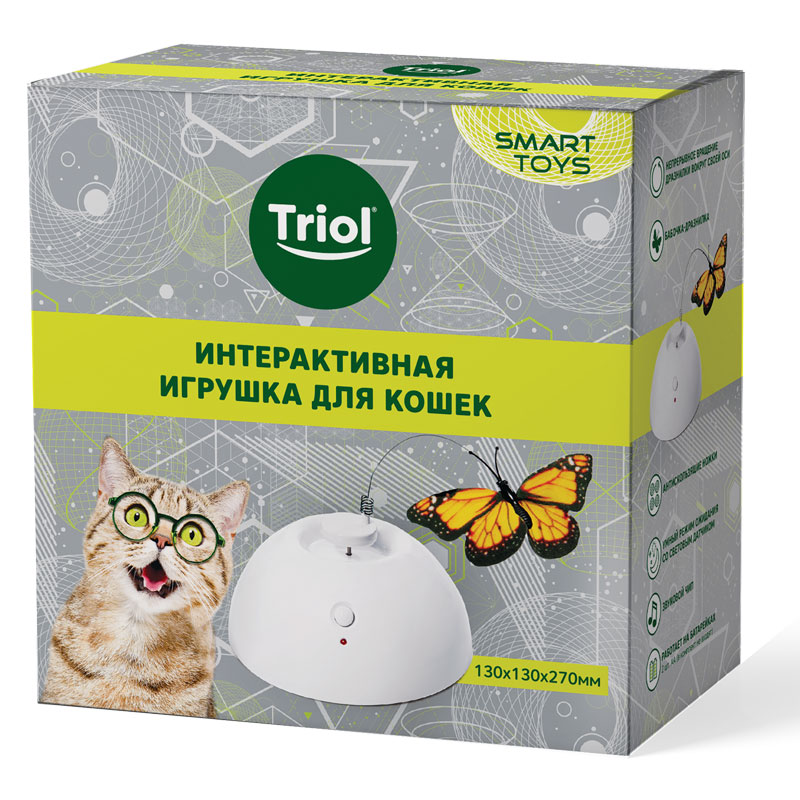 Интерактивная игрушка для кошек на батарейках "Бабочка", 130*130*270мм, серия SMART TOYS, Triol