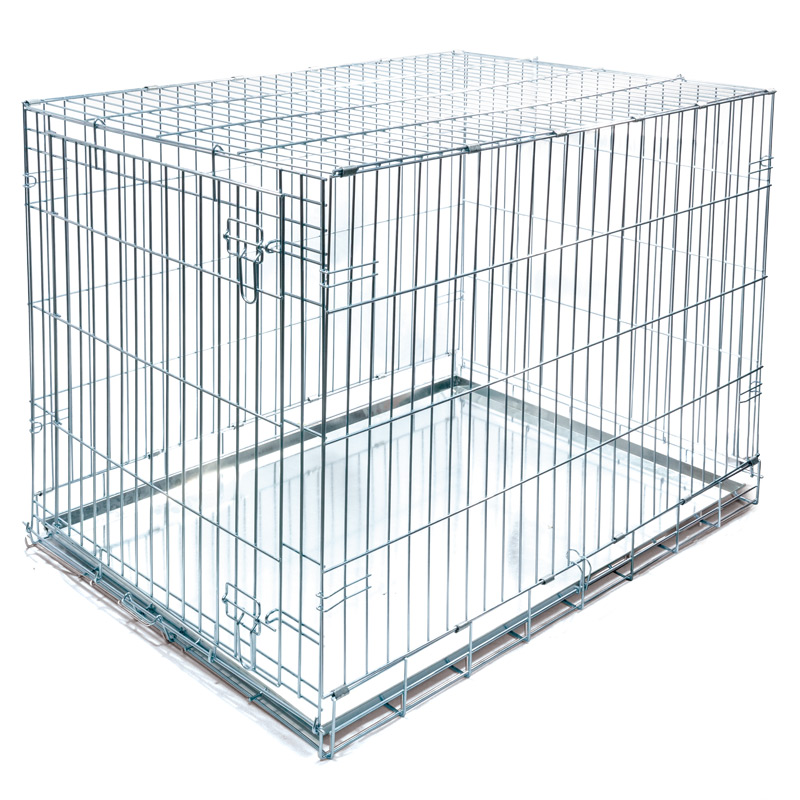 Клетка для животных оцинкованная. Легко собирается и разбирается. Поддон металлический выдвигается со стороны двери клетки. Идеально подходит для временного содержания крупных животных, выставки, перевозки. Доступ в клетку через дверь, которая закрывается на надежный засов. Оцинкованная клетка обладает высоким уровнем коррозийной стойкости. Расстояние между прутьями 38,1мм. Толщина прутьев каркаса и поперечных линий клетки 4,3мм. Толщина продольных прутьев клетки 3,4мм. Размер: 1070*700*795мм. Размер дверцы: 53,5*62см.