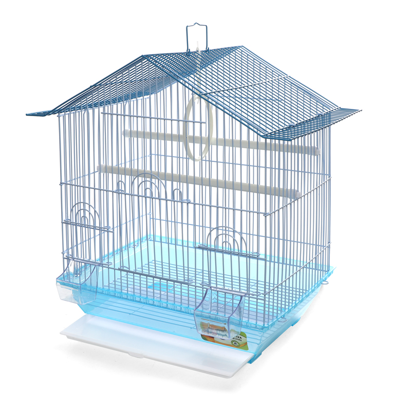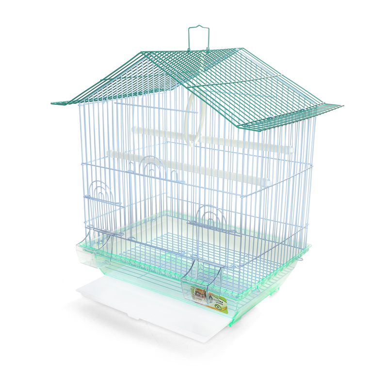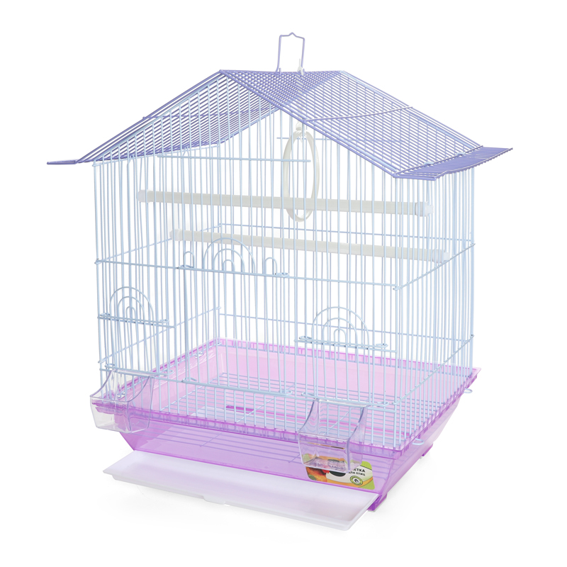 Оригинальная клетка для птиц с фигурной крышей - полезный аксессуар для владельцев пернатых питомцев. Надежная, просторная и очень удобная, такая клетка займет достойное место в любом интерьере, отвечая всем жизненным потребностям домашних любимцев. В комплектацию изделия входят 2 внутренние кормушки, 2 пластиковые жердочки и качели. Клетка оборудована удобной ручкой для переноски и специальным пластиковым наружным поддоном, облегчающим процесс уборки. Цвет: голубой, зеленый, сиреневый. Размер изделия: 345*260*440мм.