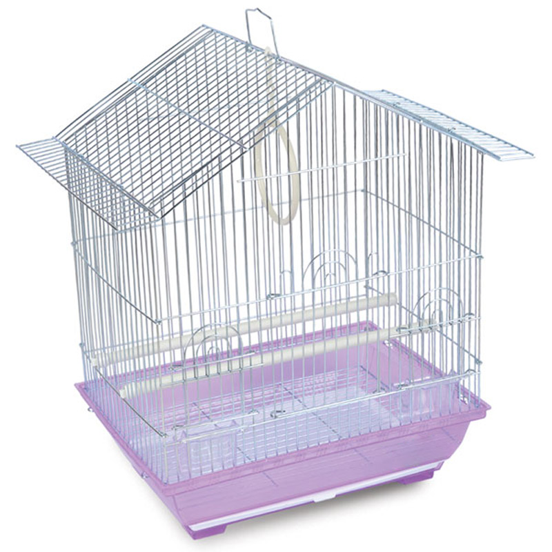 Оригинальная клетка для птиц с фигурной крышей - полезный аксессуар для владельцев пернатых питомцев. Надежная, просторная и очень удобная, такая клетка займет достойное место в любом интерьере, отвечая всем жизненным потребностям домашних любимцев. В комплектацию изделия входят 2 кормушки, 2 пластиковые жердочки и качели. Клетка оборудована удобной ручкой для переноски и специальным пластиковым наружным поддоном, облегчающим процесс уборки. Цвет: голубой, зеленый, сиреневый. Размер изделия: 345*260*440мм.