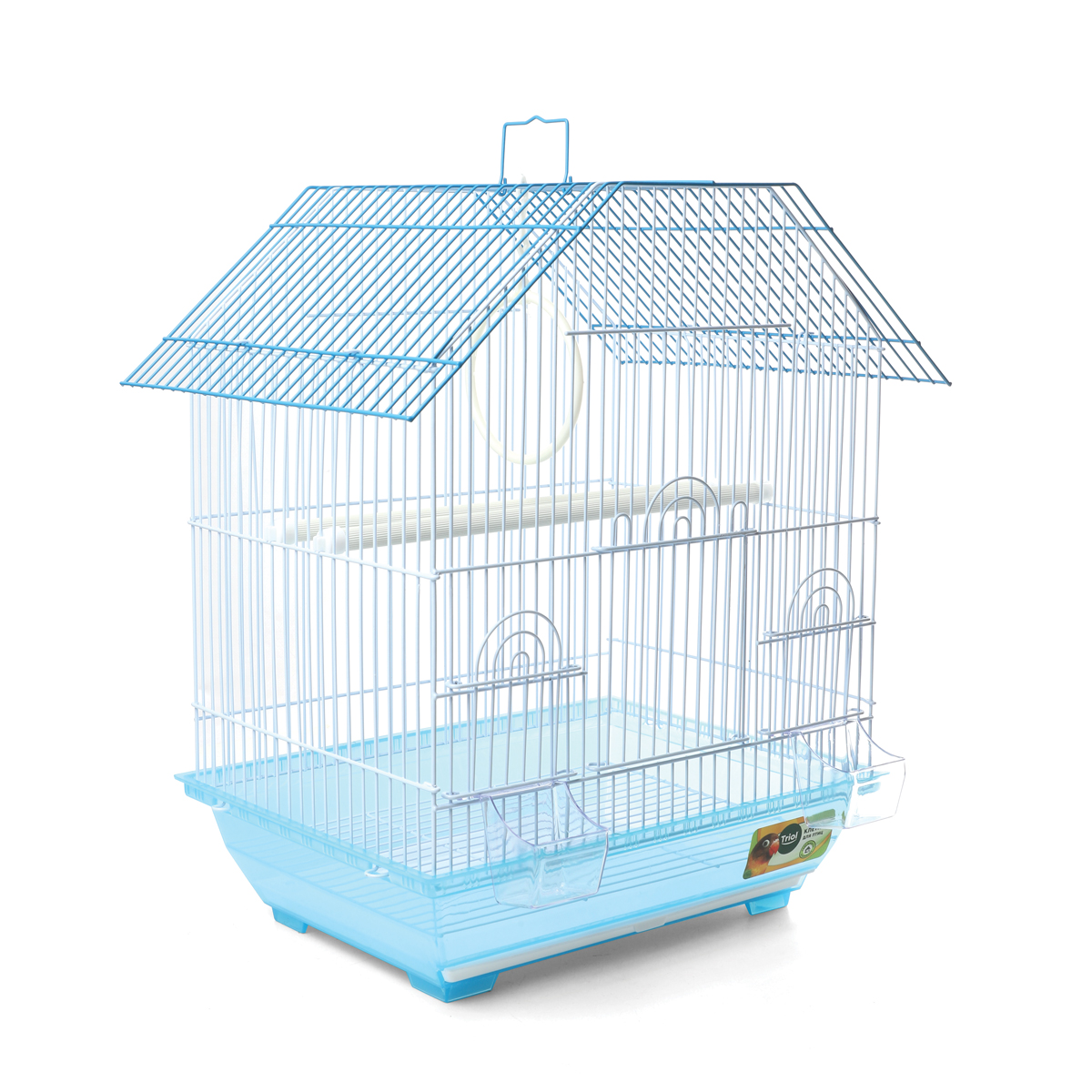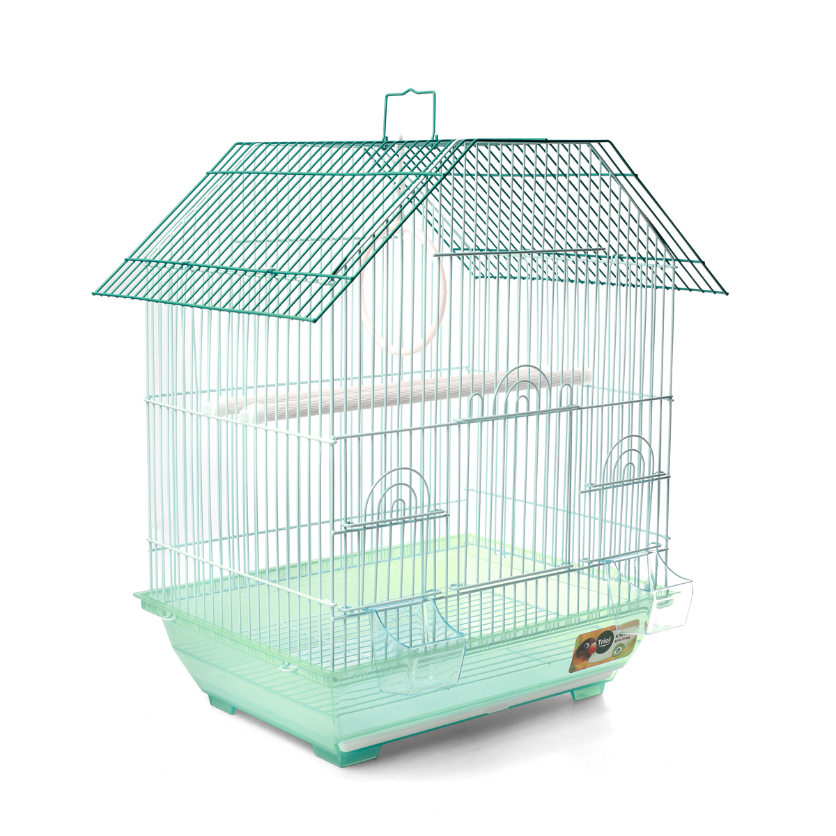 Оригинальная клетка для птиц с фигурной крышей - полезный аксессуар для владельцев пернатых питомцев. Надежная, просторная и очень удобная, такая клетка займет достойное место в любом интерьере, отвечая всем жизненным потребностям домашних любимцев. В комплектацию изделия входят 2 кормушки, 2 пластиковые жердочки и качели. Клетка оборудована удобной ручкой для переноски и специальным пластиковым наружным поддоном, облегчающим процесс уборки. Цвет: голубой, сиреневый, зеленый. Размер изделия: 345*260*440мм.