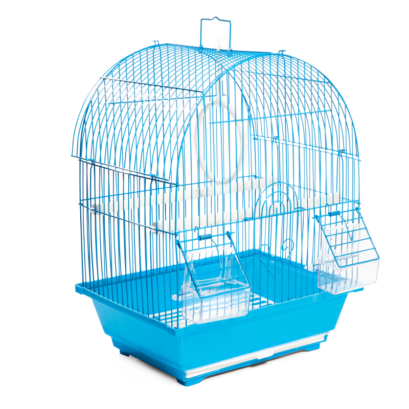 Эффектная клетка для птиц с фигурной крышей - полезный аксессуар для владельцев пернатых питомцев. Прочная и удобная, такая клетка занимает совсем немного места и отвечает всем потребностям пернатых. В комплектацию изделия входят 2 внешние кормушки, 2 жердочки и качели. Клетка оборудована удобной ручкой для переноски и специальным пластиковым наружным поддоном, облегчающим процесс уборки. Цвет: голубой, сиреневый, морской волны. Размер изделия: 300*230*390мм.