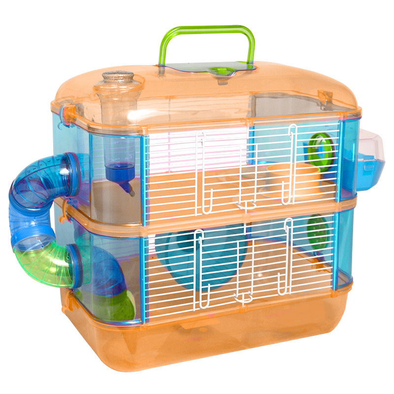 Яркая двухэтажная клетка прямоугольной формы - целый развлекательный комплекс для грызуна, который занимает немного места и отлично подходит для мелких домашних животных вроде крыс, мышей и хомяков. В комплектацию изделия также входят: пластиковая миска, поилка с носиком, уютный домик, труба-тоннель и беговое колесо. Кроме того, клетка оборудована удобной ручкой на крыше, облегчающей процесс переноски изделия. Цвет: голубой, оранжевый, розовый. Размер изделия: 400*260*400мм.