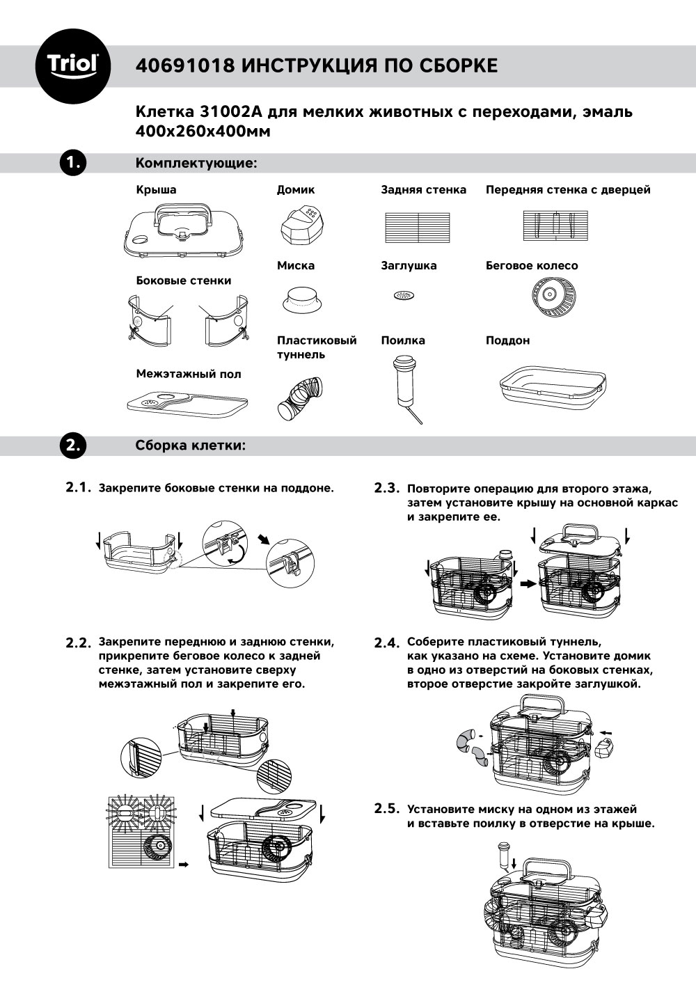 Клетка 31002A для мелких животных с переходами, эмаль, 400*260*400мм, Triol