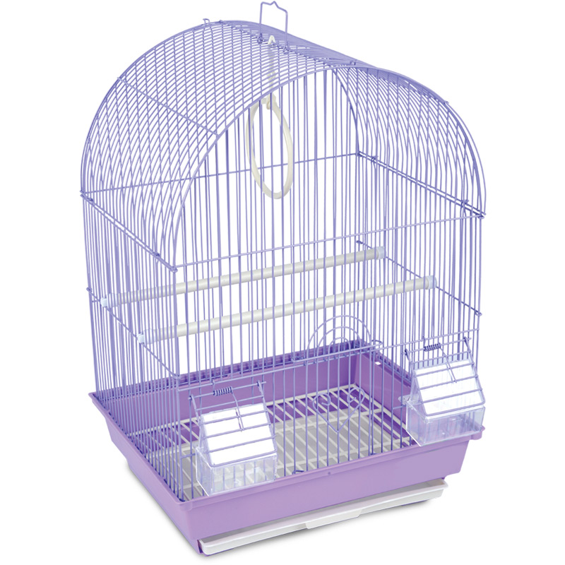 Оригинальная клетка для птиц с фигурной крышей - полезный аксессуар для владельцев пернатых питомцев. Надежная, просторная и очень удобная, такая клетка займет достойное место в любом интерьере, отвечая всем жизненным потребностям домашних любимцев. В комплектацию изделия входят 2 кормушки, 2 пластиковые жердочки и качели. Клетка оборудована удобной ручкой для переноски и специальным пластиковым наружным поддоном, облегчающим процесс уборки. Цвет: голубой, сиреневый, зеленый. Размер изделия: 345*260*440мм.