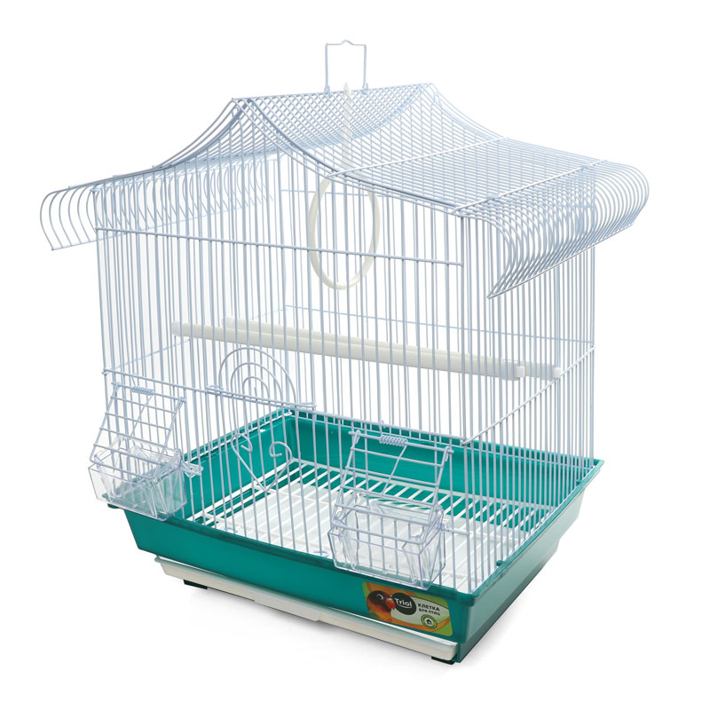 Эффектная клетка для птиц с фигурной крышей - полезный аксессуар для владельцев пернатых питомцев. Надежная, просторная и очень удобная, такая клетка займет достойное место в любом интерьере, отвечая всем жизненным потребностям домашних любимцев. В комплектацию изделия входят 2 кормушки, 2 пластиковые жердочки и качели. Клетка оборудована удобной ручкой для переноски и специальным пластиковым наружным поддоном, облегчающим процесс уборки. Размер изделия: 345х280х500мм.