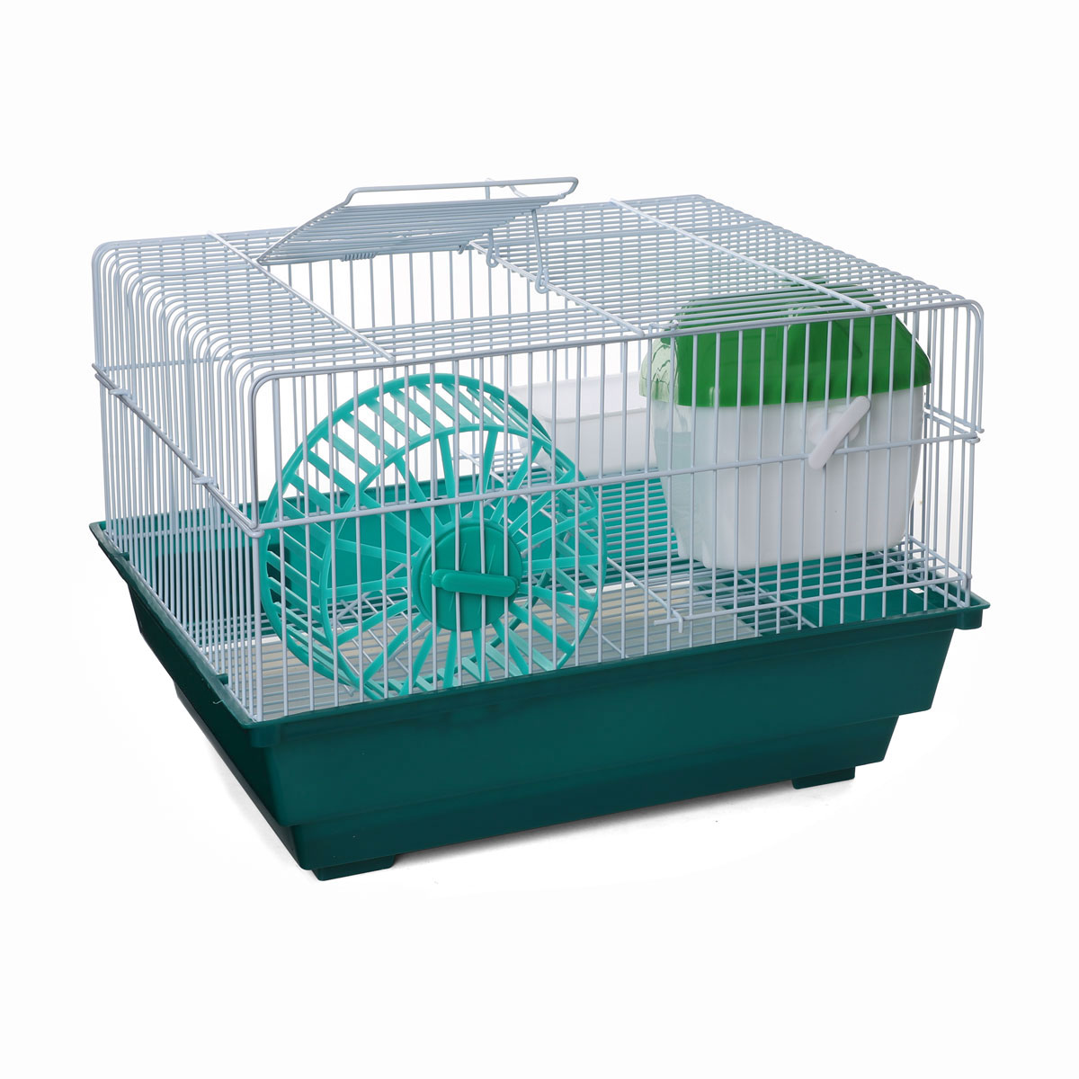 Клетка прямоугольной формы с вертикальными прутьями - удобный и функциональный дом для любого грызуна: он занимает совсем немного места и отлично подходит для мелких домашних животных вроде крыс, мышей и хомяков. В комплектацию изделия также входят: пластиковая миска, уютный домик и беговое колесо. Кроме того, клетка оборудована удобной ручкой на крыше, облегчающей процесс переноски изделия. Цвет: голубой, сиреневый, морской волны. Размер изделия: 345*280*240мм.