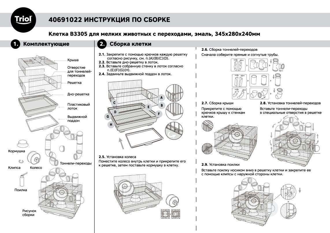 Клетка B3305 для мелких животных с переходами, эмаль, 345*280*240мм, Triol