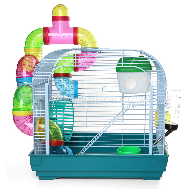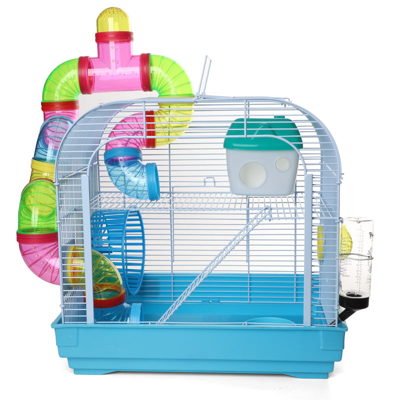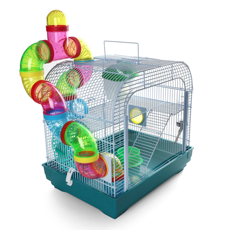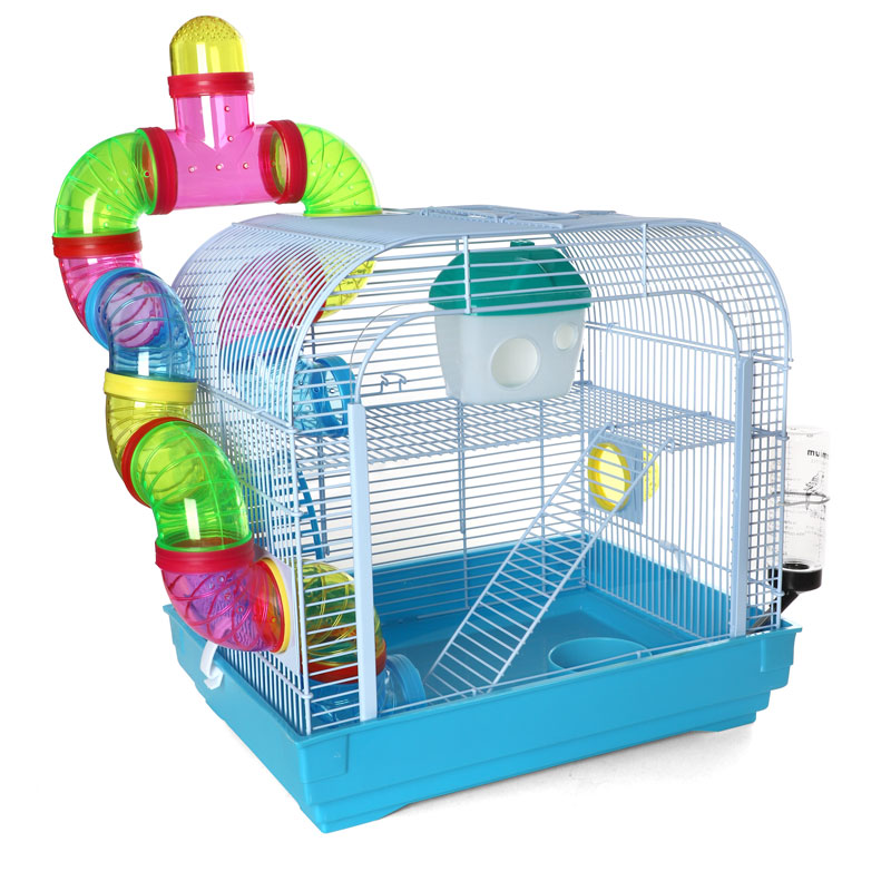 Яркая двухэтажная клетка прямоугольной формы - целый развлекательный комплекс для грызуна, который занимает немного места и отлично подходит для мелких домашних животных вроде крыс, мышей и хомяков. В комплектацию изделия также входят: пластиковая миска, поилка с носиком, уютный домик, труба-тоннель и беговое колесо. Кроме того, клетка оборудована удобной ручкой на крыше, облегчающей процесс переноски изделия. Цвет: голубой, оранжевый, розовый. Размер изделия: 400*260*400мм.