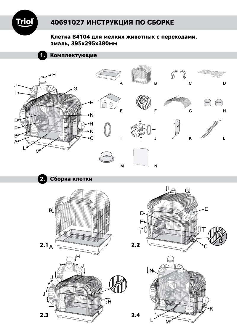 Клетка B4104 для мелких животных с переходами, эмаль, 395*295*380мм, Triol
