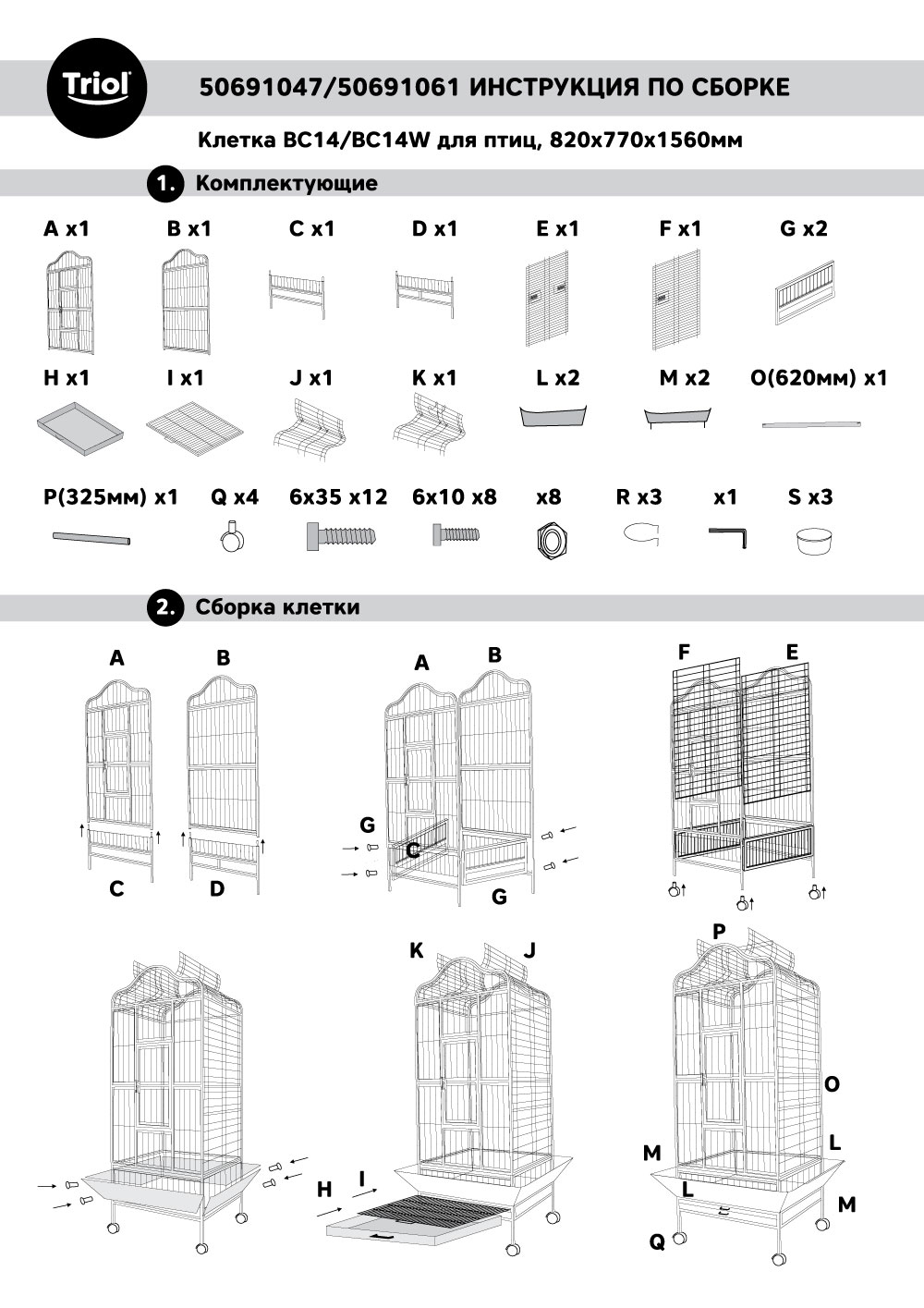 Клетка BC02 для птиц, белая, 780*600*1560мм, Triol
