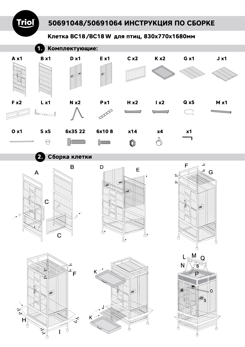 Клетка BC02 для птиц, белая, 780*600*1560мм, Triol