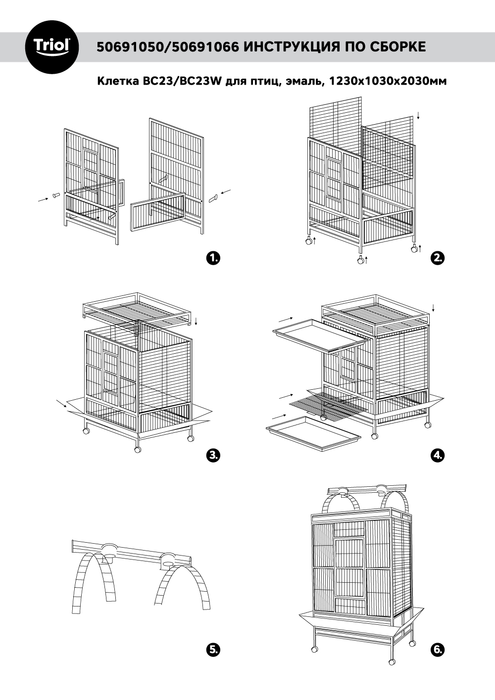 Клетка BC23 для птиц, черный металлик, 1230*1030*2030мм, Triol