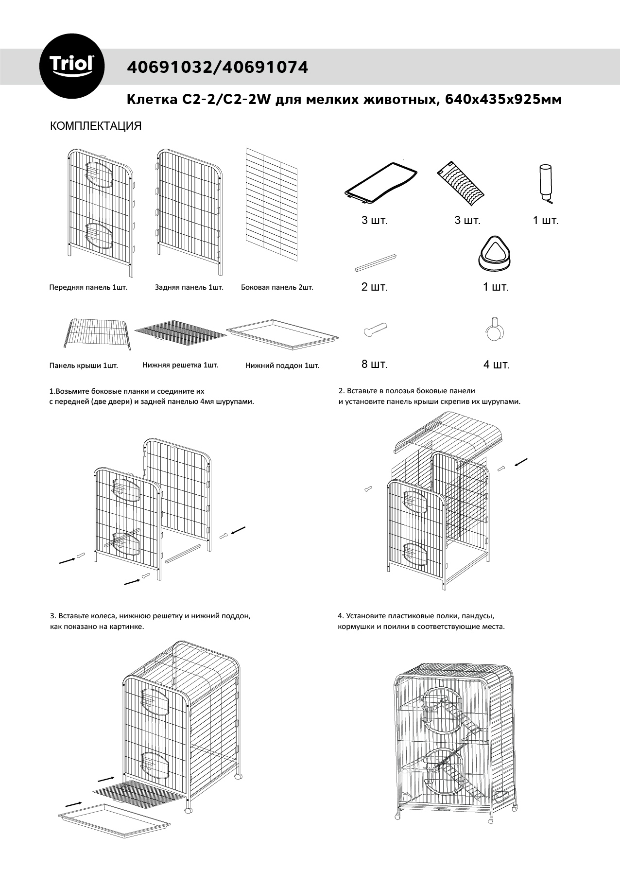 Клетка C2-2 для мелких животных, черный металлик, 640*435*925мм, Triol