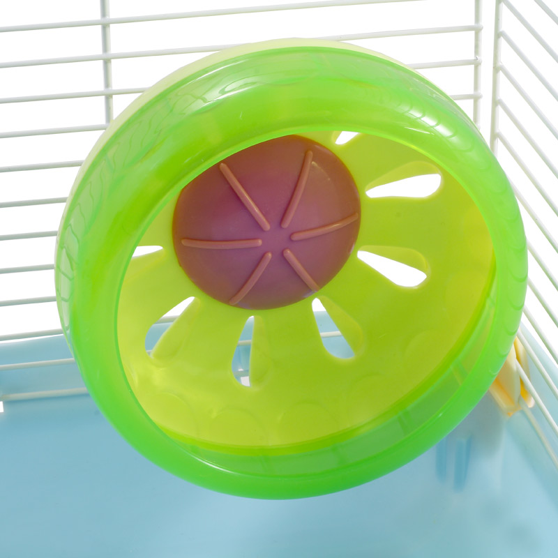 Складная компактная цветная клетка с прочным металлическим каркасом. Она не занимает много места и отлично подходит для мелких домашних животных вроде крыс, мышей и хомяков. В комплектацию изделия также входят: пластиковая миска, поилка с носиком, горка со второго яруса на первый, вместительный домик и беговое колесо. Клетка также оборудована специальным пластиковым наружным поддоном, облегчающим процесс уборки, а удобная ручка сверху максимально упрощает транспортировку изделия. Цвет: белый/голубой. Размер изделия: 225х170х250мм.