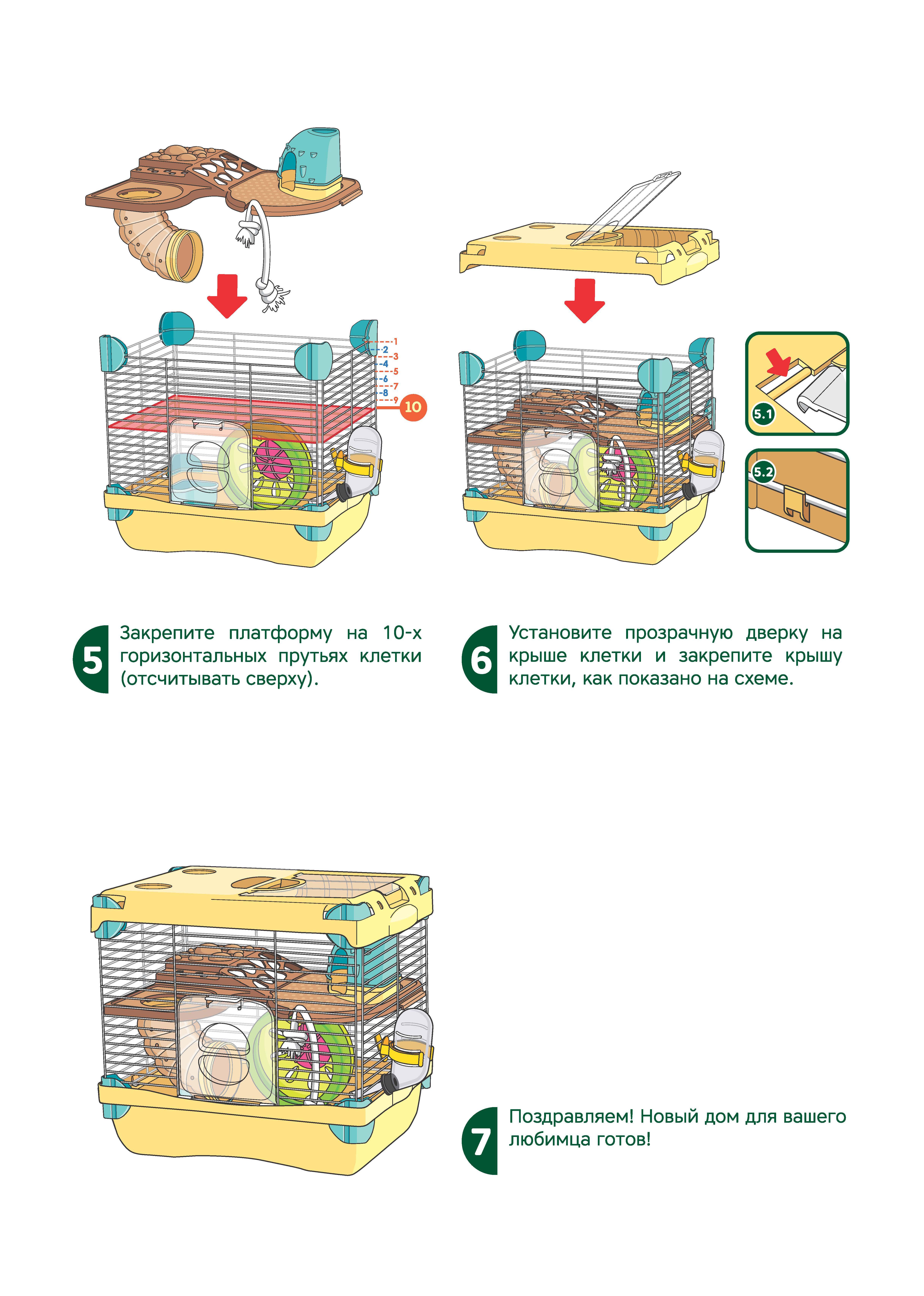 Яркая клетка прямоугольной формы с горизонтальными прутьями имеет два этажа и внутренние тоннели-переходы. Данная клетка - целый развлекательный комплекс для грызуна, который занимает немного места и отлично подходит для мелких домашних животных вроде крыс, мышей и хомяков. В комплектацию изделия также входят: пластиковая миска, поилка с носиком и уютный домик. Кроме того, клетка оборудована специальным пластиковым наружным поддоном, облегчающим процесс уборки. Размер изделия: 275х205х250мм; диаметр колеса: 115мм.