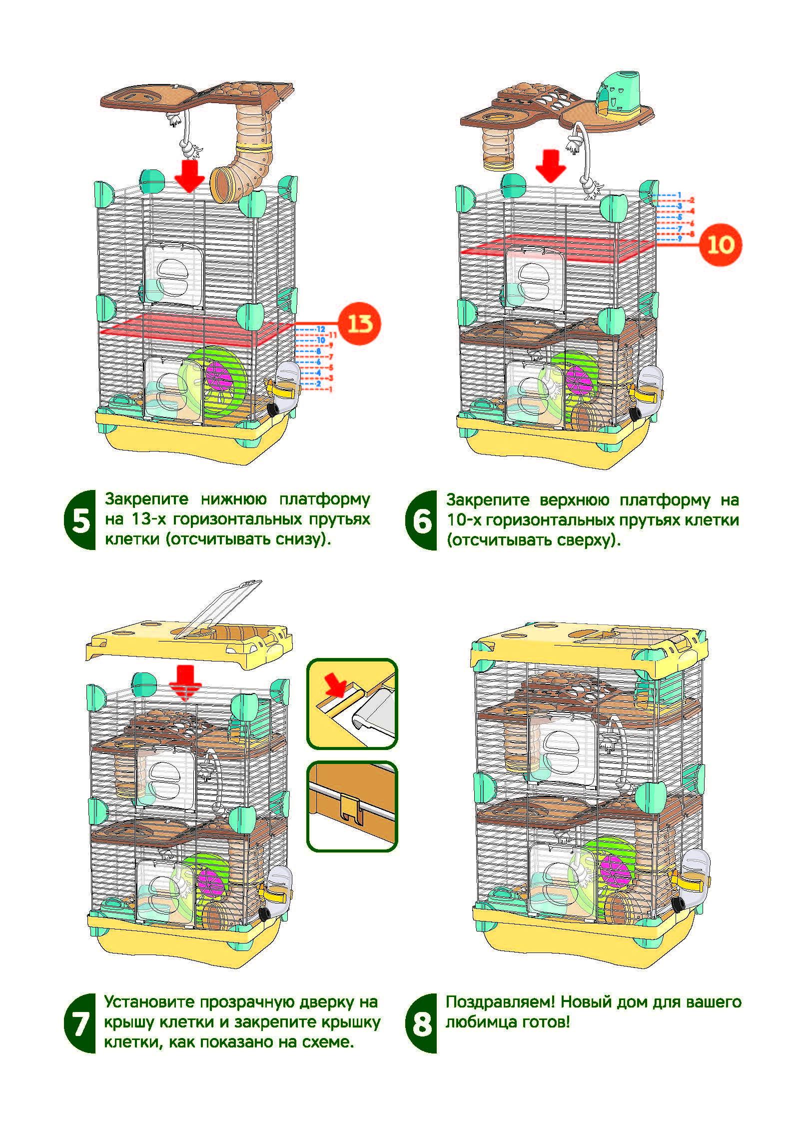 Складная компактная цветная клетка с прочным металлическим каркасом. Она не занимает много места и отлично подходит для мелких домашних животных вроде крыс, мышей и хомяков. В комплектацию изделия также входят: пластиковая миска, поилка с носиком, горка со второго яруса на первый, вместительный домик и беговое колесо. Клетка также оборудована специальным пластиковым наружным поддоном, облегчающим процесс уборки, а удобная ручка сверху максимально упрощает транспортировку изделия. Цвет: белый/зеленый. Размер изделия: 225х170х250мм.