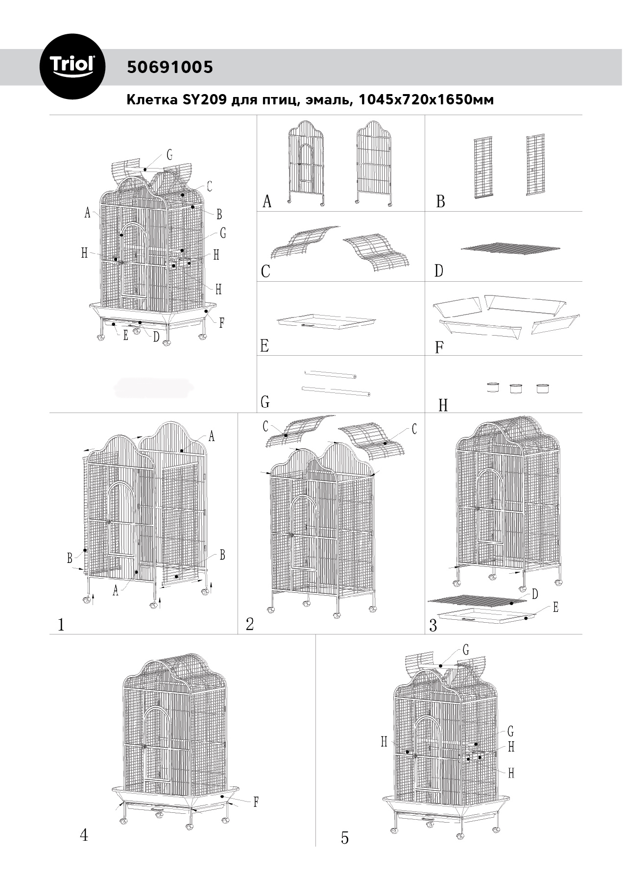 Клетка BC02 для птиц, белая, 780*600*1560мм, Triol