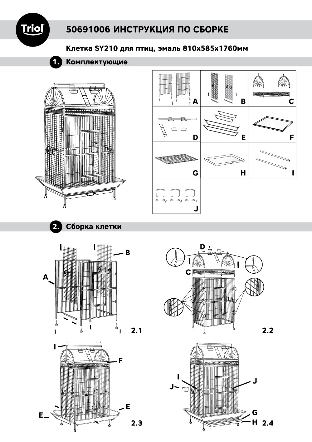 Клетка SY210 для птиц, черный металлик, 810*585*1760мм, Triol