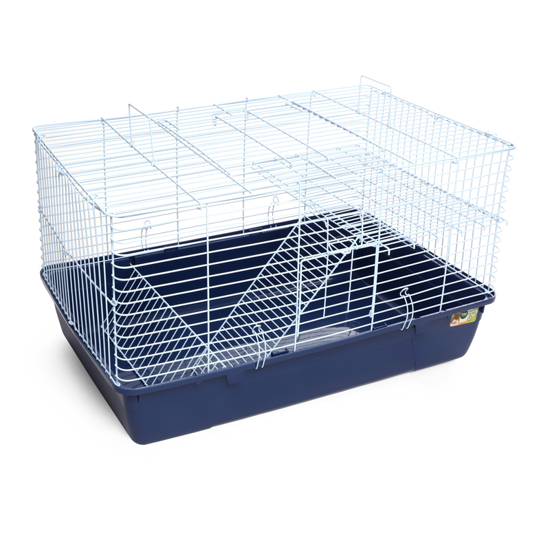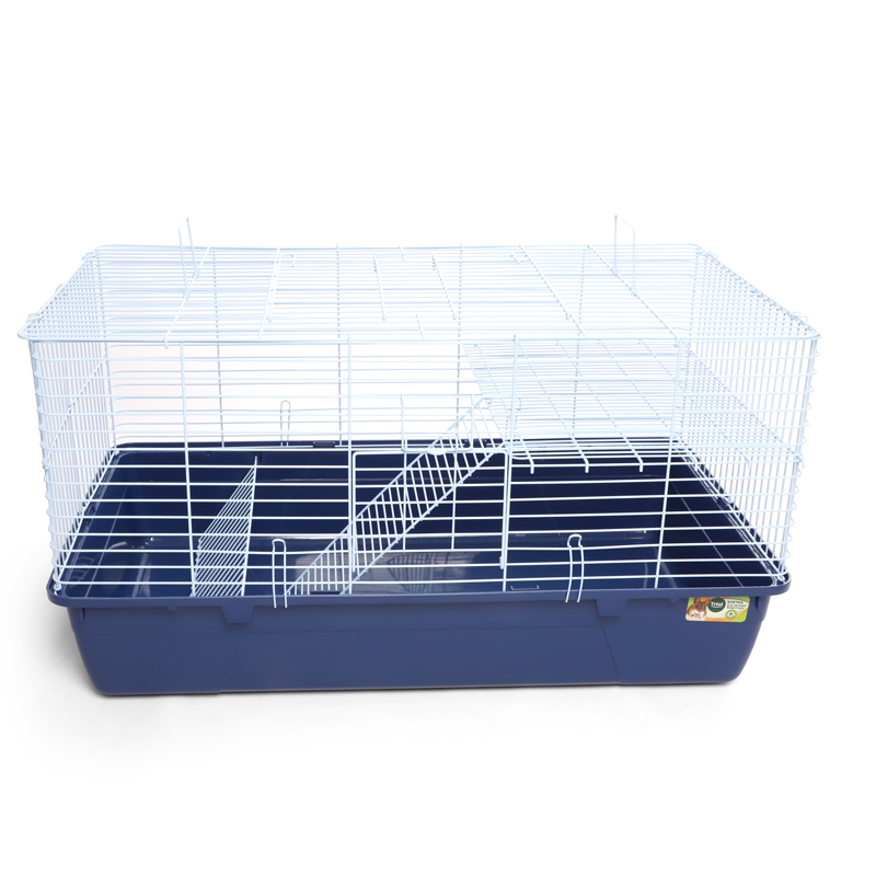 Универсальная клетка с прочным металлическим каркасом - то, что нужно любому грызуну. Просторная и надежная - она отлично подходит для крупных грызунов, таких как кролики и морские свинки. Клетка оборудована держателем для сена и специальным пластиковым наружным поддоном, облегчающим процесс уборки. Цвет: белый/синий. Размер изделия: 560х340х370мм.
