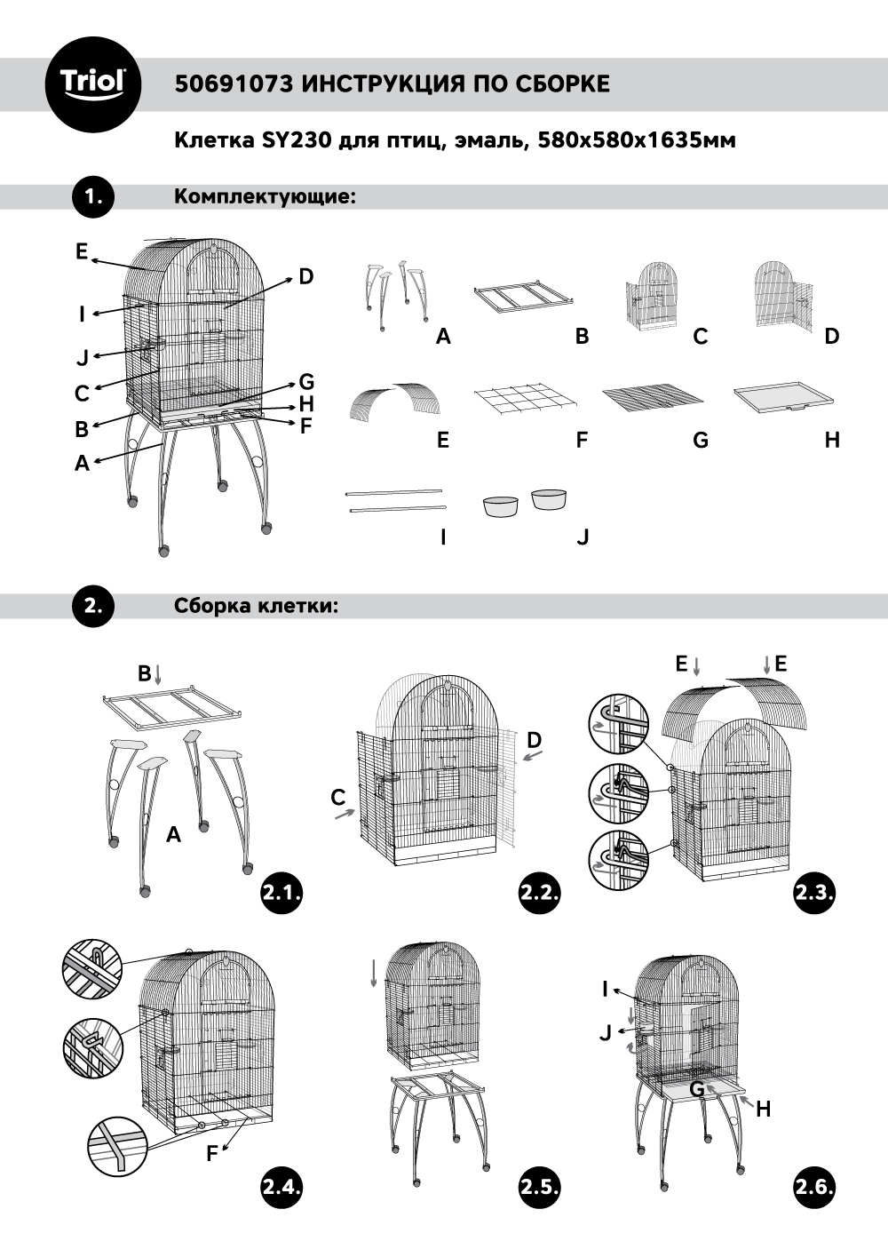 Клетка SY230 для птиц, эмаль, 580*580*1635мм, Triol