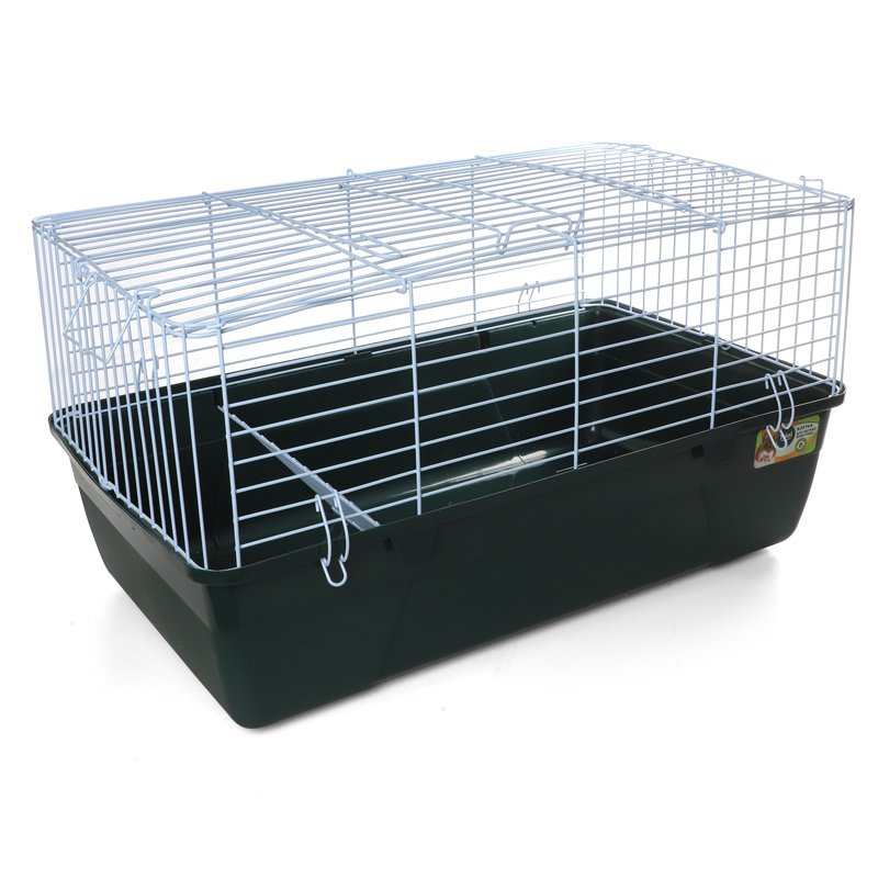 Универсальная клетка с прочным металлическим каркасом - то, что нужно любому грызуну. Просторная и надежная - она отлично подходит для крупных грызунов, таких как кролики и морские свинки. Клетка оборудована держателем для сена и специальным пластиковым наружным поддоном, облегчающим процесс уборки. Цвет: белый/темно-зеленый. Размер изделия: 600х355х320мм.