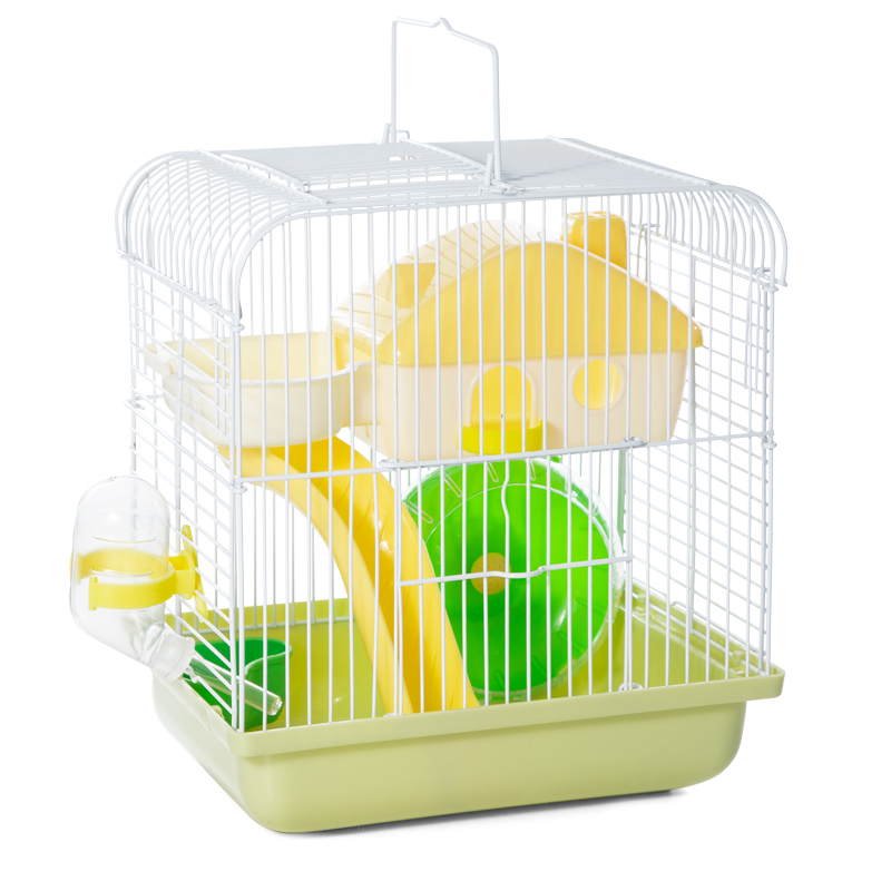 Складная компактная цветная клетка с прочным металлическим каркасом. Она не занимает много места и отлично подходит для мелких домашних животных вроде крыс, мышей и хомяков. В комплектацию изделия также входят: пластиковая миска, поилка с носиком, горка со второго яруса на первый, вместительный домик и беговое колесо. Клетка также оборудована специальным пластиковым наружным поддоном, облегчающим процесс уборки, а удобная ручка сверху максимально упрощает транспортировку изделия. Цвет: белый/зеленый. Размер изделия: 225х170х250мм.