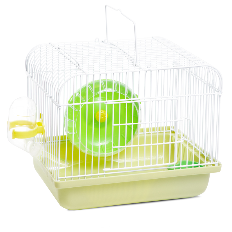 Компактная цветная клетка с прочным металлическим каркасом. Она не занимает много места и отлично подходит для мелких домашних животных вроде крыс, мышей и хомяков. В комплектацию изделия также входят: пластиковая миска, поилка с носиком и беговое колесо. Клетка также оборудована специальным пластиковым наружным поддоном, облегчающим процесс уборки, а удобная ручка сверху максимально упрощает транспортировку изделия. Цвет: оливковый. Размер изделия: 225х170х190мм.