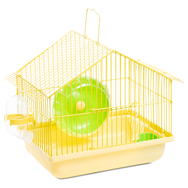 Компактная цветная клетка с фигурной крышей. Она не занимает много места и отлично подходит для мелких домашних животных вроде крыс, мышей и хомяков. В комплектацию изделия также входят: пластиковая миска, поилка с носиком и беговое колесо. Клетка также оборудована специальным пластиковым наружным поддоном, облегчающим процесс уборки, а удобная ручка сверху максимально упрощает транспортировку изделия. Цвет: голубой, желтый, розовый, зеленый. Размер изделия: 225х170х215мм.