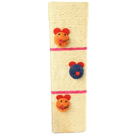 Когтеточка изготовлена из натурального материала – сизаля. Когтеточка очень прочная, не занимает много места в интерьере. Когтеточку можно использовать как на полу, так и прикрепив её к стене, в том месте где Ваш питомец пристрастился точить коготки. По своей природе сизаль обладает уникальным антистатичным свойством, следовательно, когтеточка не накапливает пыль, что облегчает процесс уборки. Три забавные мышки - дополнительный аксессуар для игр и привлечения внимания кошки к когтеточке. Размеры: 490*130*20мм.