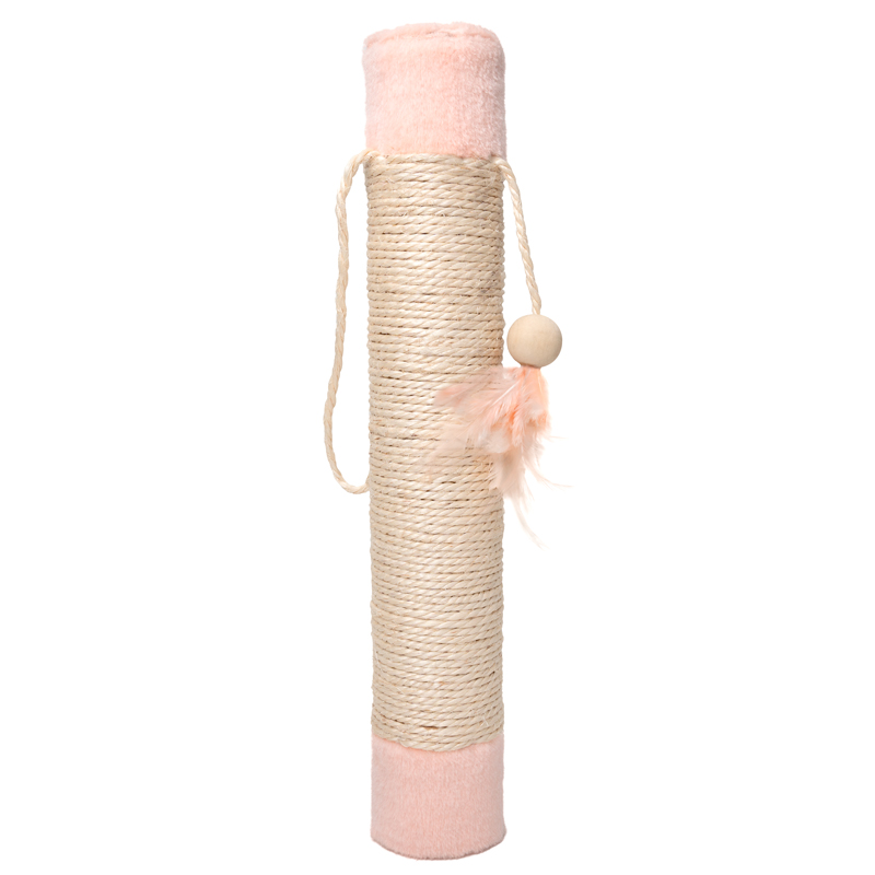 Когтеточки - обязательный аксессуар для личной гигиены кошек, который помогает животным избавиться от шелушащихся слоев когтя, причиняющих дискомфорт подушечкам лап. По своей природе сизаль обладает уникальным антистатичным свойством, следовательно, когтеточка не накапливает пыль, что облегчает процесс уборки. Когтеточка прикрепляется к стене, в том месте где Ваш питомец пристрастился точить коготки, с помощью специальной петли, либо подвешивается к мебели. Шарик из сизаля с перьями - дополнительный аксессуар для игр и привлечения внимания кошки к когтеточке. Цвет: бежево-розовый. Размер: 70*70*450мм.