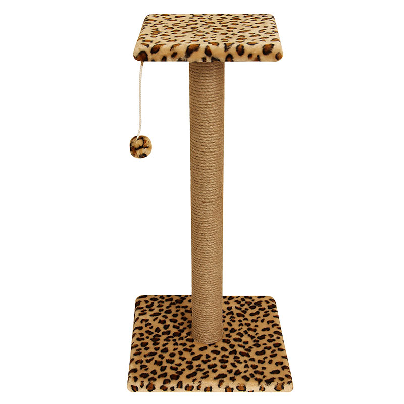 Эта универсальная когтеточка представляет собой стойку-столбик с плотной джутовой обмоткой. Вертикальная когтеточка расположена на устойчивой платформе и имеет дополнительную полочку наверху с обивкой из цветного искусственного меха. А мягкая игрушка на веревочке развлечет пушистого любимца в минуты бодрого настроения. Данная стойка послужит не просто необходимым аксессуаром кошки для безопасного стачивания когтей, но и станет её любимым местом времяпрепровождения. Размер изделия: 360х360х760мм, диаметр столбика 70мм. Цвет изделия: серый с пятнами, бежевый леопард, серый с лапками.