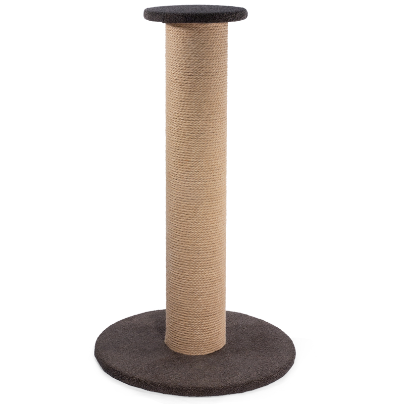 Эта универсальная когтеточка представляет собой стойку-столбик с плотной джутовой обмоткой. Вертикальная когтеточка расположена на устойчивой и просторной платформе с обивкой из однотонного искусственного меха, где ваш питомец сможет с комфортом разместиться, а мягкая игрушка на веревочке развлечет пушистого любимца в минуты бодрого настроения. Данная стойка станет не просто необходимым аксессуаром кошки для безопасного стачивания когтей, но и станет её любимым местом времяпрепровождения. Размер изделия: 360х360х760мм, диаметр столбика 70мм. Цвет: бежевый, серый