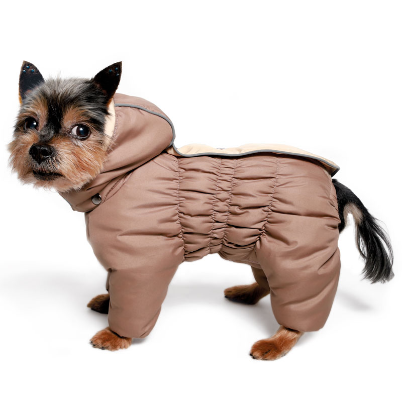 Яркий демисезонный комбинезон с капюшоном изготовлен из мягкого флиса с комбинацией современной курточной ткани Дюспо, которая эффективно отталкивает влагу, не пропускает ветер, не боится сильных морозов и ярких солнечных лучей. Комбинезон выполнен с учетом анатомических особенностей тела собаки, имеет специальные вставки из резинок, что позволяет изделию плотно сидеть на собаке, а также декорирован функциональным светоотражающим элементом.