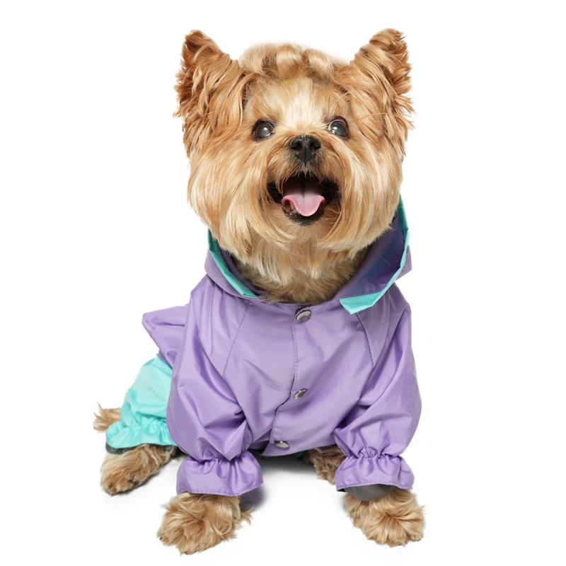 Яркий демисезонный комбинезон с капюшоном и юбочкой изготовлен из курточной ткани Дюспо, которая эффективно отталкивает влагу, не пропускает ветер, не боится сильных морозов и ярких солнечных лучей. Подкладка выполнена из подкладочной ткани, что позволяет препятствовать образованию колтунов. Комбинезон выполнен с учетом анатомических особенностей тела собаки, имеет специальные вставки из резинок, что позволяет изделию плотно сидеть на собаке.